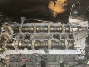 クランクプーリーを交換するのにカムシャフトを固定する為カバーを外して