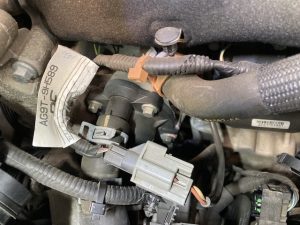 インテークマニホールドの下にありましてエンジンルームからは少し見にくい所にあります