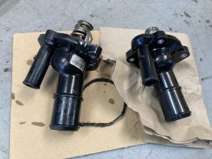 クーラント漏れの点検しましたらサーモスタットハウジングから漏れてきてましたので交換作業いたします