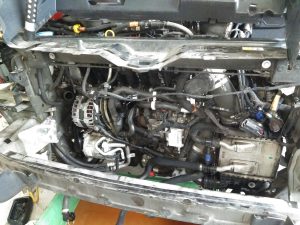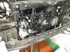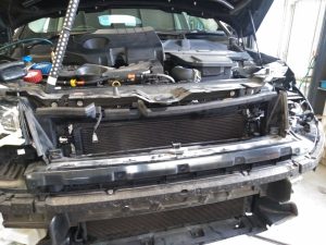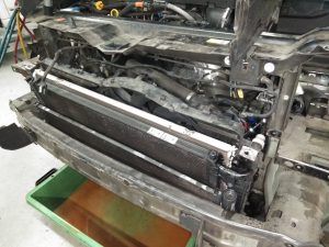 フロントバンパー廻り一式取り外してラジエターごと取り外し交換していきます。