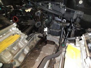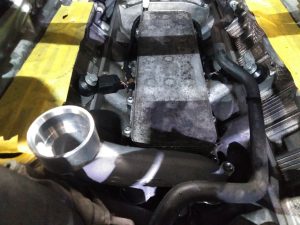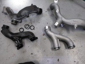 エンジン左右バンクをつなぐクーラントパイプも併せて交換します。