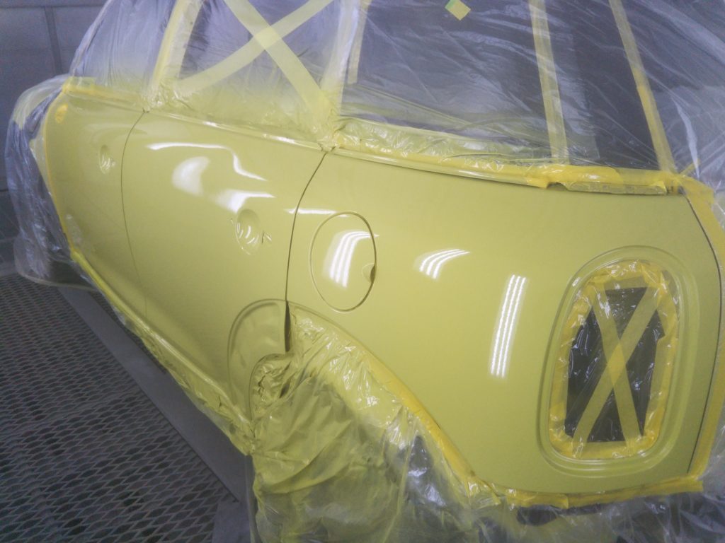 1回のベース色の塗装回数は通常3回ほどになりますが、黄色のボディカラーは色が染まらない現象が起こります。