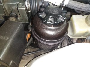 パワーステアリングフルード量が少ないようでポンプにエアーが混入して音が発生。