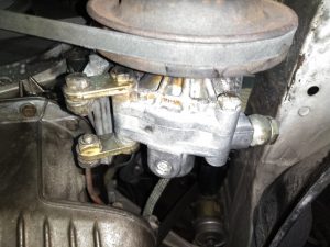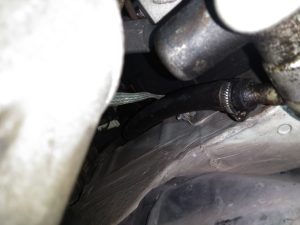 パワーステアリングフルード漏れ箇所を点検するとフルードタンクとポンプをつなぐホースが