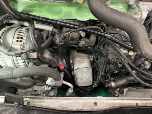 インマニを外してクーラントのホース類を外すとオイルフィルターケースが見えますね