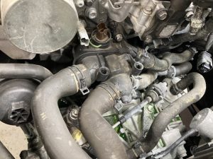 BMW ミニ クーラント漏れBMW ミニワンミニワン サーモハウジング交換