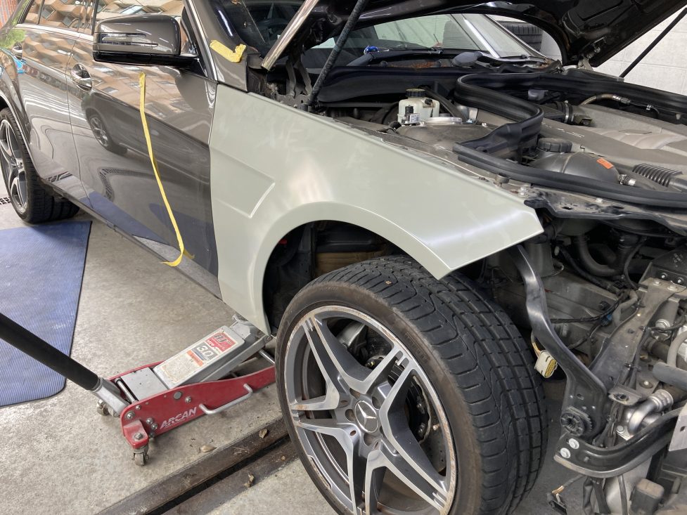 フロントドア、ボカシ塗装、フロントバンパー、変形、交換、フロントフェンダー、変形、交換、メルセデスベンツ、Eクラス、W212、