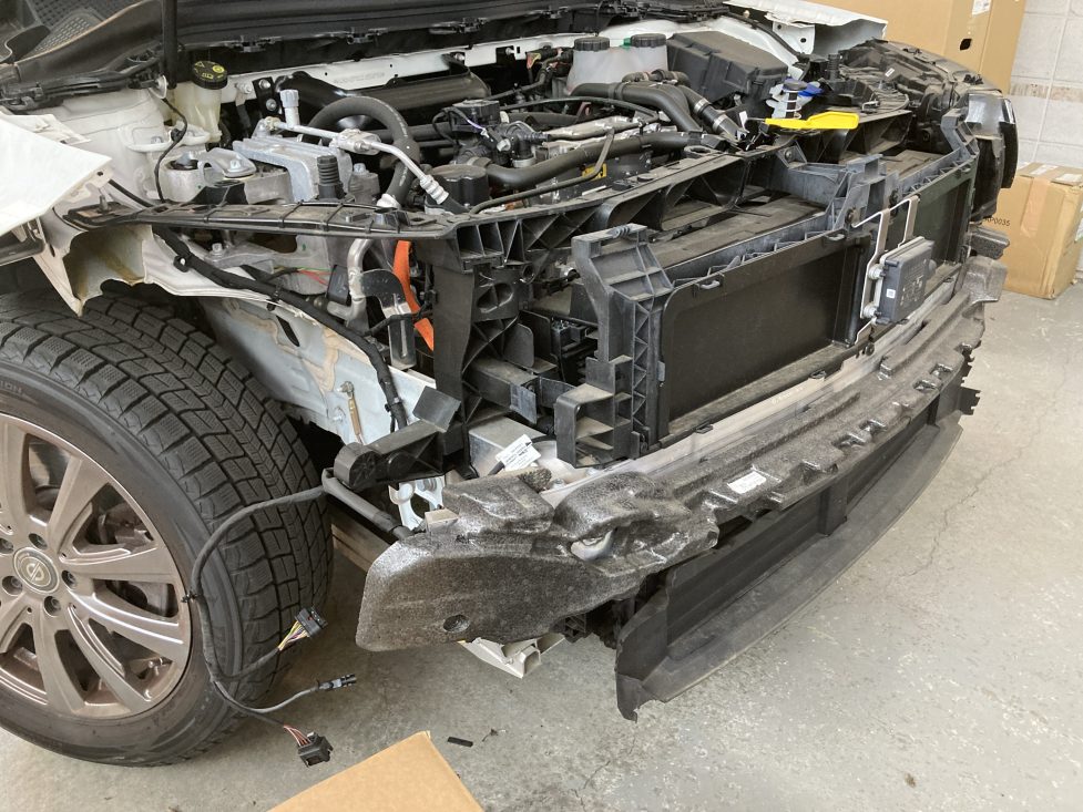 今回は車との事故でフロント部を損傷した修理をご依頼頂きました。