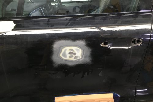 ポルシェ、911の左フロント部、右側面の損傷修理とストーンガードテープを剥がす作業をしました。
